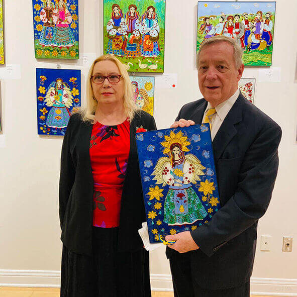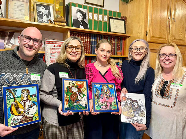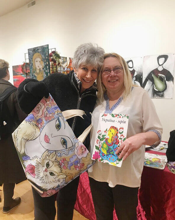 У березні цього року Олена Дяденко вступила у Союз українок Америки, очоливши у Чикаго його 36-й відділ, тому що відчувала: люди більш активно жертвують кошти установам і організаціям, аніж особам в індивідуальному порядку. І тепер вона вдячна за допомогу і підтримку своїм друзям – Олені Пак, Еріці Комоні, Лесі Бандолі, Ірині Губерман, завжди безвідмовній та ініціативній Галині Назаркевич. Разом вони вже організували майстер-класи з малювання на склі, з петриківського розпису, з ручного розпису на тканині – батік, виставку в офісі Марії Папас (Cook County Treasurer’s), взяли участь у благодійному івенті благодійної організації «Дочки України» (Зоряна Сможаник), де половину зароблених коштів залишили організації на придбання дронів, а іншу половину використають на придбання бинтів і на підтримку притулку для тварин. А минулої неділі в Українському Інституті модерного мистецтва відбувся благодійний концерт за участю скрипальки Юлії Перехожук, піаніста Мирослава Михайленка і вокаліста Назара Михайленка, зібрані на якому кошти – 700 доларів – митці віддали 36-му відділу Союзу українок з подальшим їхнім використанням знову ж таки для придбання бинтів і для допомоги тваринам.
