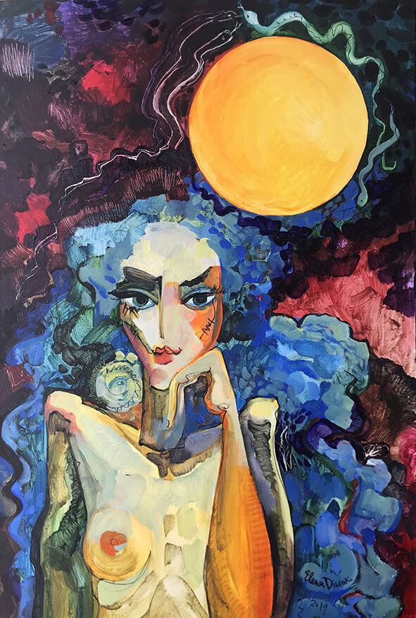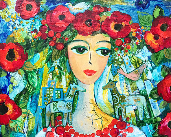 Це – коротко про її, так би мовити, трудову біографію. А тепер – про творчість, про два напрямки живопису, у яких реалізує свій талант мисткиня. Перший – фігуративна абстракція на полотні. Не художня конкретика у вигляді натюрмортів, пейзажів чи портретів, а саме абстракція, яка дозволяє художниці писати картину не стільки фарбами, скільки фібрами своєї душі, своїми думками, нечутною музикою, невидимою поезією, – усе це потім відчувають поціновувачі цих картин, кожен із яких бачить і читає їх по-своєму. Саме таку мету і переслідує автор: не нав’язувати своє бачення, а надати іншим простір для індивідуального сприйняття та індивідуальних емоцій – вони ж бо і справді у кожного різні.