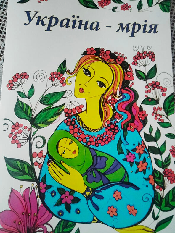 Отак ця книга побачила світ. Вона називається «Україна-мрія». Побудована книга таким чином, що на правій сторінці кожного розвороту подано дитячі віршики Ольги Артемчук і картини Олени Дяденко – тільки чорні контури, які, за принципом розмальовки, потрібно заповнити кольоровими фарбами чи олівцями, а лівий аркуш розвороту – порожній, чистий, тільки угорі – питання-пропозиція намалювати або описати власні мрії і відчуття на конкретну тему. Наприклад: «Чим тобі подобається той край, у якому ти живеш?», «Якою буде твоя сім’я, коли ти виростеш?», «В якому будинку ти мрієш жити?», «Що повинно бути на твоїй вулиці?», «Ким ти станеш, коли закінчиш навчання?», «Кого ти запросиш у гості, щоб показати Україну своєї мрії?». І наостанок віршик: «Ангел ясноокий крила розправляє, і спада на землю дощ із зірочок. Захисти, ангелику, рідну Україну, донеси до Бога мрії діточок!»
