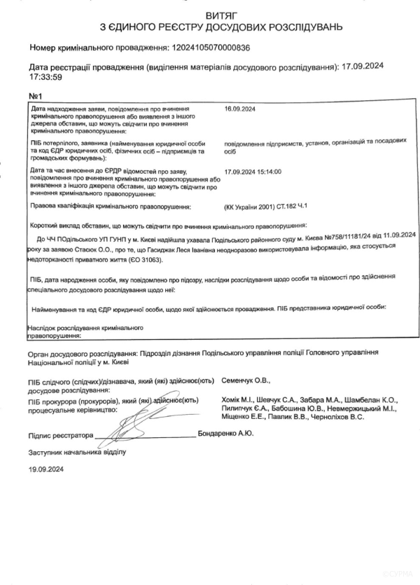 На фото: витяги з ЄРДР про кримінальні провадження
