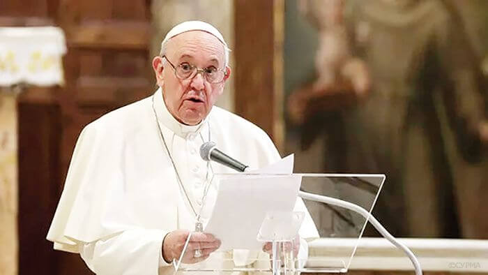 У цей же час Франциск зазначав: «Україна вже тривалий час переживає важку та делікатну ситуацію, вже понад п’ять років вона поранена конфліктом, який багато хто називає «гібридним», що складається з воєнних дій, в яких відповідальні маскуються; конфліктом, в якому найслабші та найменші платять найвищу ціну; конфліктом, обтяженим пропагандистськими фальсифікаціями та різнорідними маніпуляціями, як також спробами втягнути релігійний аспект».