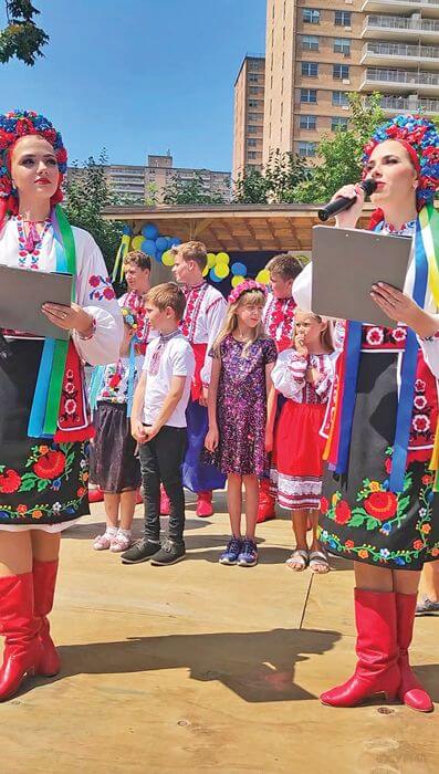 Концертну програму вела родина Обертос: мама Ольга та її донькиблизнята Анна та Христина — випускниці цієї школи, нині волонтерки, активні члени української громади, учасниці «Синевира». До речі, це не поодинокий приклад, коли випускники залишаються активістами шкільного колективу.