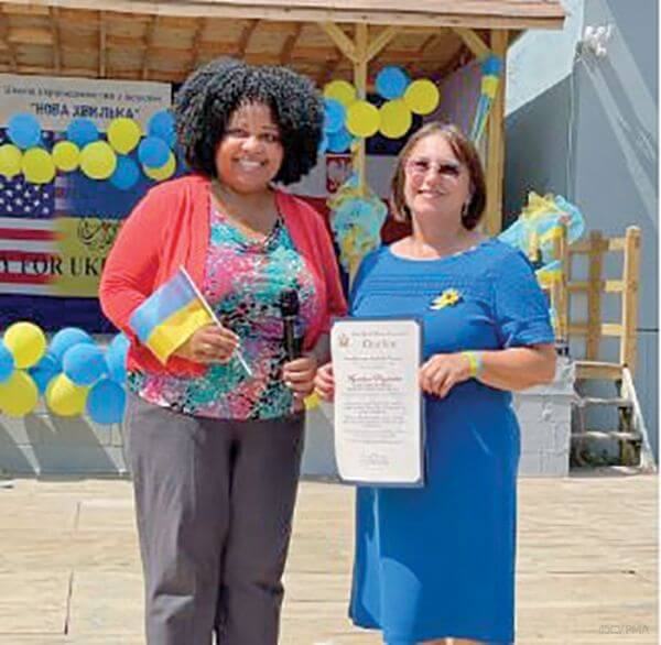 вручила Мирославі Роздольській (директорці школи) грамоту за активну участь в роботі громади Брукліна