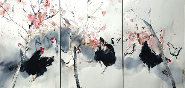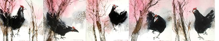 Ця творчість — антивоєнна. Мирні зовні квіти борються. Квітка живе, пробивається і вже цим вона — антимілітарі. Так само борються зображені птахи. Але вони доносять свою красу й не агресивні. Ми замислюємося, що треба зберігати цю красу. Вона виражена в рідних символах і архетипах. І, звичайно, з-поміж них найбільше тут вирізняються соняшники. Соняшники — чорні, як туш. Соняшники — виразно-жовті, під грозовим небом. Соняшники, зерно яких дзьобають птахи… Попри все, соняшники ростуть, квітнуть і годують.