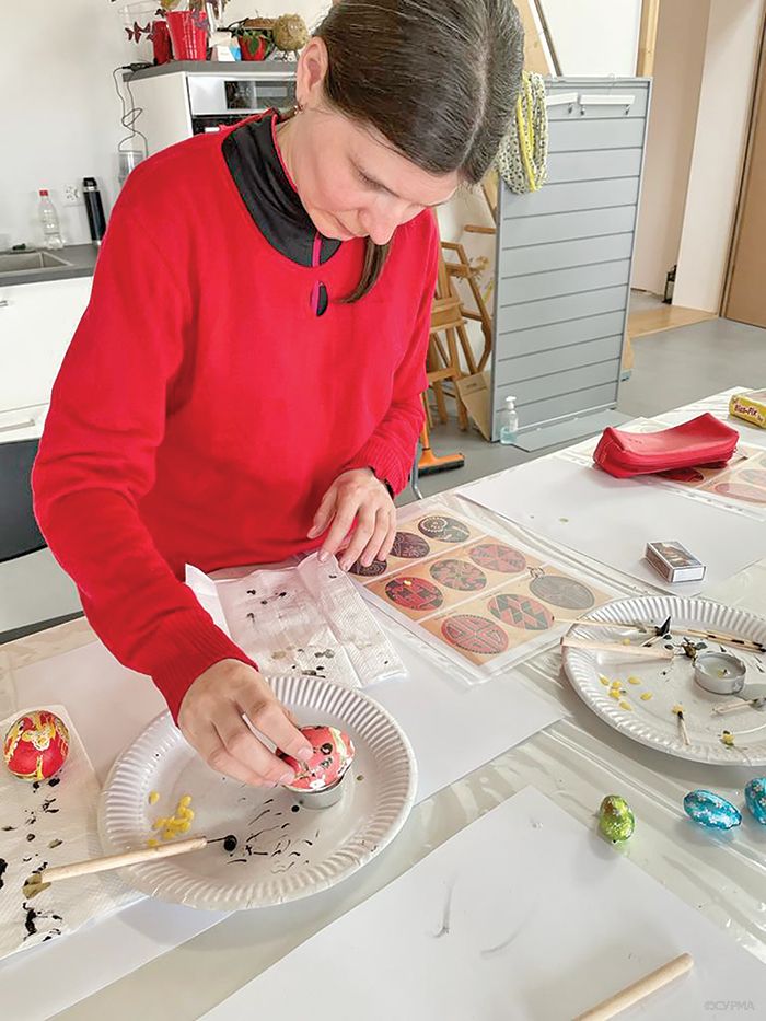 Авторка статті на майстер-класі з писанкарства (Івердон-ле-Бен)