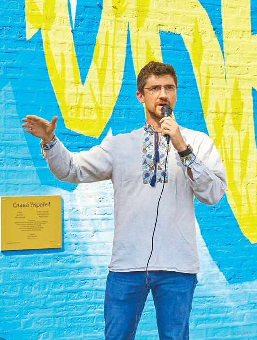 Хлопці з ентузіазмом взялися до роботи. Сказали, що зроблять це за символічну плату. Додали, що це для них— велика честь: те, що сьогодні відбувається в Україні, нікого не залишає байдужим... Перший робочий день тривав у них 24 години... Минали дні... Підходили перехожі й цікавилися, що це буде... Не зізнавалися... Казали: сюрприз... І сюрприз вдався. Через майже три тижні роботи уже все було готове до відкриття стінопису. І 27 серпня мурал розміром 45 на 18 фіт (приблизно 13.5 на 5.5 метра) було урочисто відкрито. Тепер він став не просто окрасою Української околиці, а й улюбленою фотозоною для українців і не тільки...