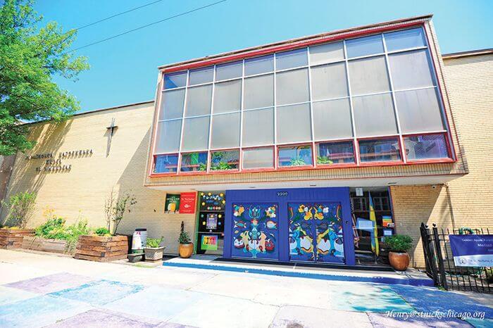 Наша з вами екскурсія слідами українства продовжується. Поруч із катедрою св. Миколая в Чикаго розташована школа св. Миколая. Перед нами два великі будинки з широкими вікнами у світ. Отож, за синіми, розписаними українськими орнаментами дверима історія трьох поколінь емігрантів, які вийшли у світ зі стін цієї Альма-матері...
