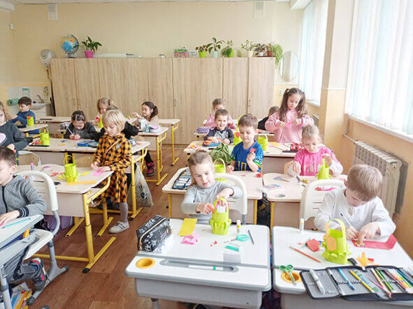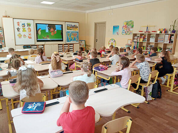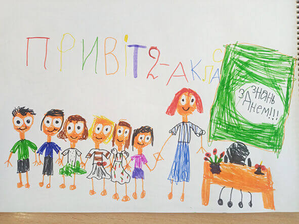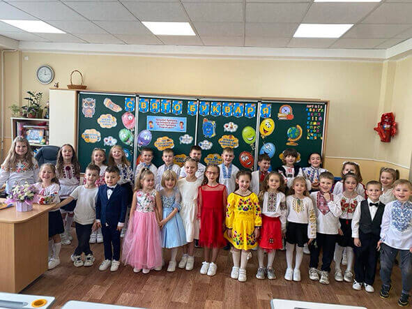 Коли почалася повномасштабна війна, ми вчилися. 24 лютого, четвер. Зрозуміло, що всі вдома. Для дітей залишитися вдома взагалі щось незвичне. І ще й така ситуація. Але вже знаємо, що таке ковід, що таке бути вдома. Спочатку працювали на онлайні три місяці до кінця навчального року. А влітку вчителі повернулися до школи. Ми зібралися і вирішили працювати, теж завдяки нашому директору, яка в пріоритет ставить завжди навчання офлайн, особливо для початкових класів.