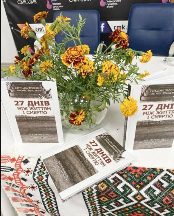 У Києві в Товаристві «Знання» України відбулася презентація книжки «27 днів між життям і смертю» (наклад – 300 примірників). То є документальні свідчення про воєнні злочини московитських окупантів у селі Ягідне на Чернігівщині, що їх зібрали українські журналісти Світлана та Леонід Фросевичі. Кошти за перші розкуплені примірники автори спрямували на фронт для 411 бригади Окремого полку безпілотних систем «Яструби». Водночас видання вже надіслане на розгляд Міжнародного кримінального суду в Гаазі.