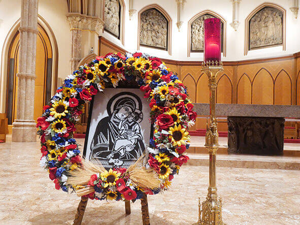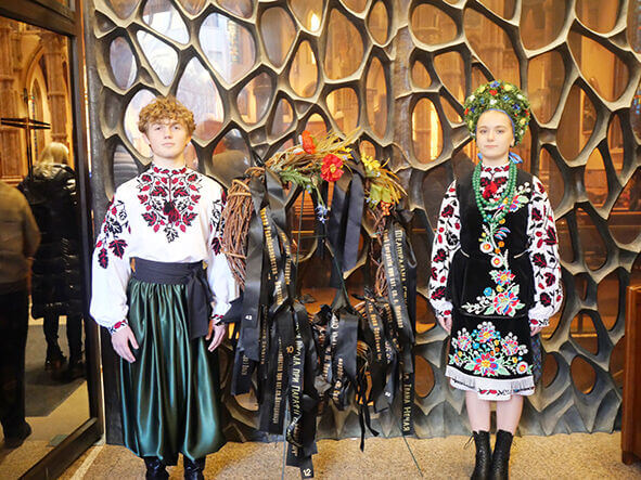 «Боже великий, єдиний, нам Україну храни», – духовний гімн, глибокі слова якого злітали під небозвід храму, виконав на завершення панахиди хор осередку СУМ імені Павлушкова (керівник Володимир Попович). А поруч на вишиванці – Матір Божа з Ісусом. І юні українці біля тернових вінків, оповитих чорними стрічками. А до них вплетені червоні маки, блакитні волошки, гарячі соняхи і повнозерні колоски. Як символ незламності і віри. І свіча поруч. І молитва на вустах. За всіх, хто загинув без імені і без могил. Щоб не забулося. Щоб не повторилося.