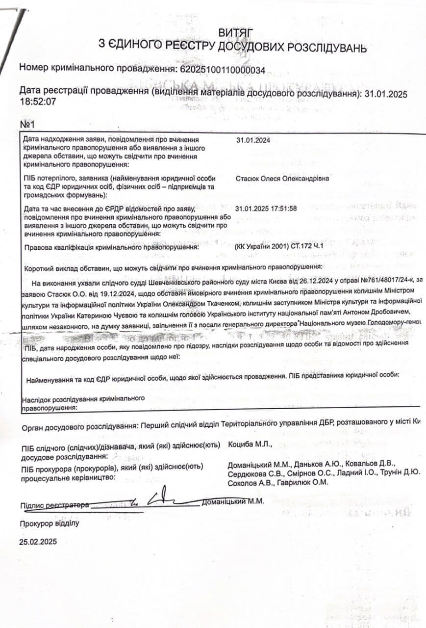 Цікаво, що Інститут національної пам’яті – взагалі не науково-дослідна установа, а, передусім, – державний орган, що має популяризувати історію, зокрема, – результати новітніх наукових досліджень. Щодо діяльності Дробовича, як активного представника «п’ятої колони», сказано вже багато хоча б тим, що насьогодні щодо нього відкрито кілька кримінальних проваджень, зокрема і за ст. 111 КК України – «Державна зрада».