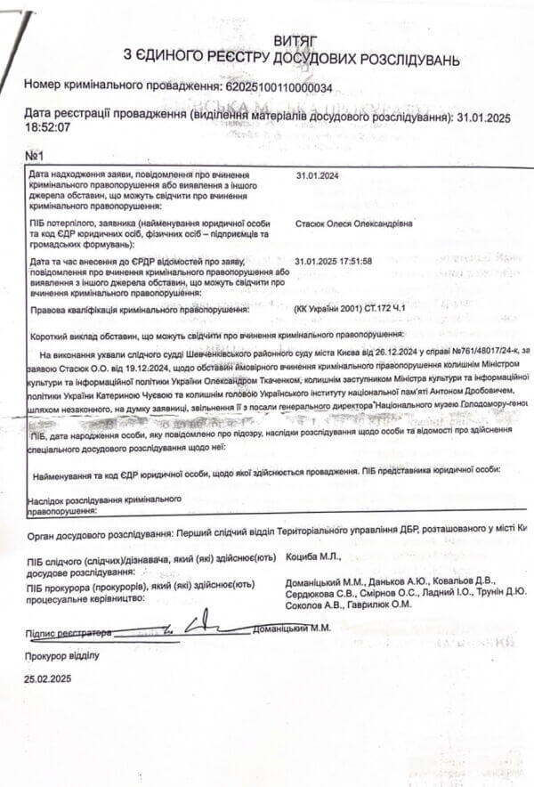 Адже саме це рішення стало важливим прецедентом юридичного визнання провини кремля, проте під час досудового розслідування не була проведена низка необхідних комплексних експертиз, зокрема – для встановлення чисельності жертв Голодомору-геноциду. Лише у жовтні 2019 року директора Національного музею Голодомору Олеся Стасюк ініціювала нове кримінальне провадження – проти виконавців злочину. У межах його розслідування у 2019 – 2024 роках вперше були здійснені комплексні судові експертизи, що вставили втрати української нації внаслідок Голодомору – 10,5 млн вбитих, з яких 9,1 млн – на території тодішньої УСРР, 1,4 млн – на Північному Кавказі.