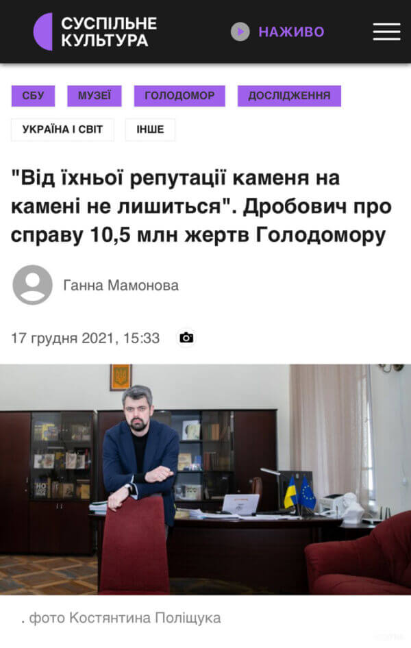 Проте залишається інше цікаве питання: Як підприємцю вдалося домовитися з державною установою УІНП, щоб справі про його протиправну діяльність не дали ходу? Відповідь може ховатися у синхронності заяв Дробовича і Мельника, які напередодні Дня пам’яті жертв Голодомору, почали в унісон дискредитувати висновки судових експертиз, які встановили, що комуністичний режим знищив 10,5 млн українців в роки Голодомору-геноциду. Складається враження, що насправді фоп - «видавець» підіграє ворожій пропаганді та допомагає москві приховувати масштаби своїх злочинів.