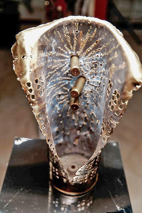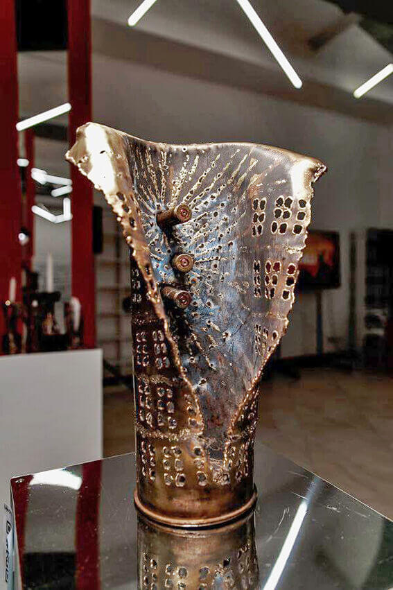 А з перших місяців повномасштабної війни Володимир Балибердін почав творити нову колекцію із залишків зброї агресора під загальною назвою «Пам'ять Серця». То є серія ювелірних прикрас із гільз та інтер’єрні арт-об'єкти з уламків зброї, що є символами нашої майбутньої Перемоги. Завдяки таланту Володимира залізо, що несло смерть, трансформується в красу. Йому є що сказати світові.