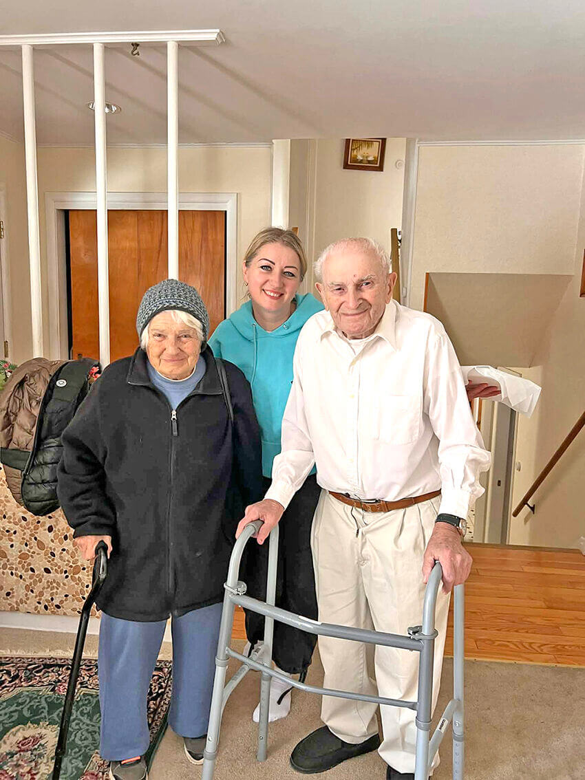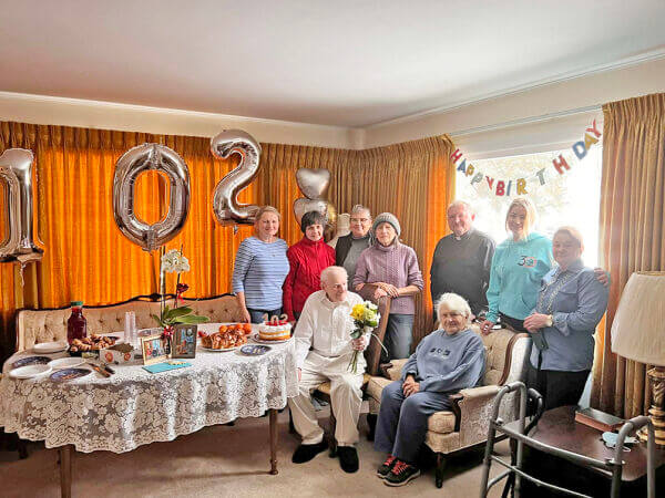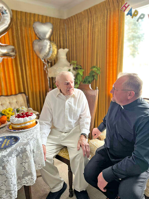 Отож 31 січня – це був надто емоційний день для парафіянина церкви Непорочного Зачаття, що в місті Палатайн, пана Василя Наняка. День народження! Свято життя! 102 роки! А разом із ним цей день став надзвичайно емоційним для усіх, хто прийшов привітати ювіляра. Так-так, ювіляра. Адже після цифри 100, погодьтеся, кожен наступний прожитий рік стає ювілейним. І вже за доброю багаторічною традицією у цей день невтомна бджілка, активна волонтерка, ревна парафіянка Мар’яна Бабій збирає близьких людей, щоб навідатися з привітаннями до поважного іменинника. А разом із нами – отець Ярослав Мендюк. І всі наші голоси так мелодійно зливалися у традиційному пісенному побажанні «Многая літа!», що, здавалося, його було чутно на кілька найближчих вулиць, а всім перехожим хотілося нам підспівувати!