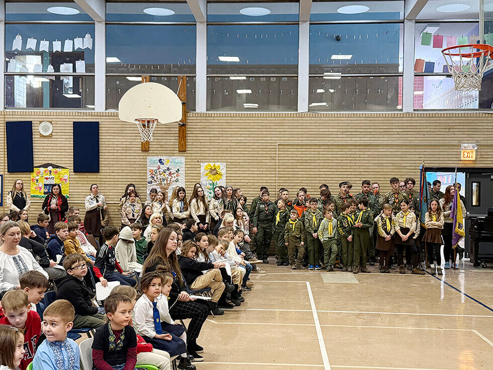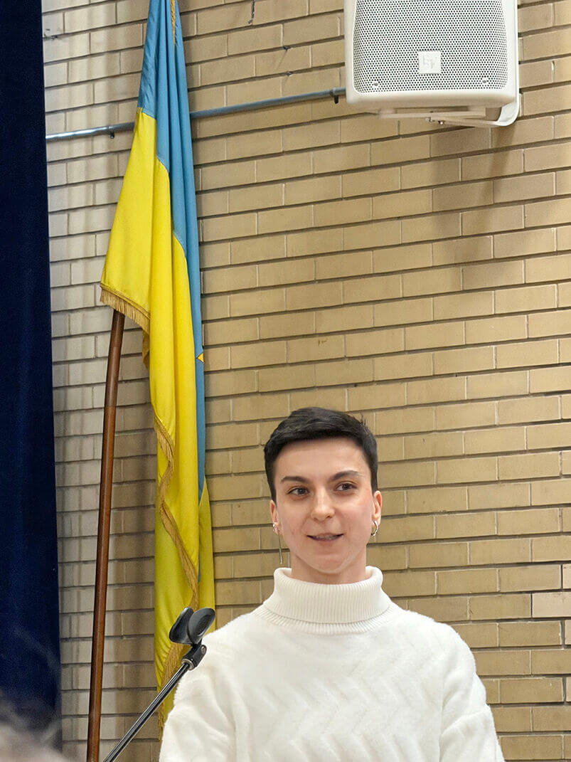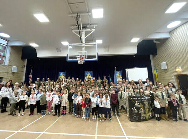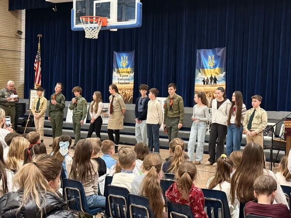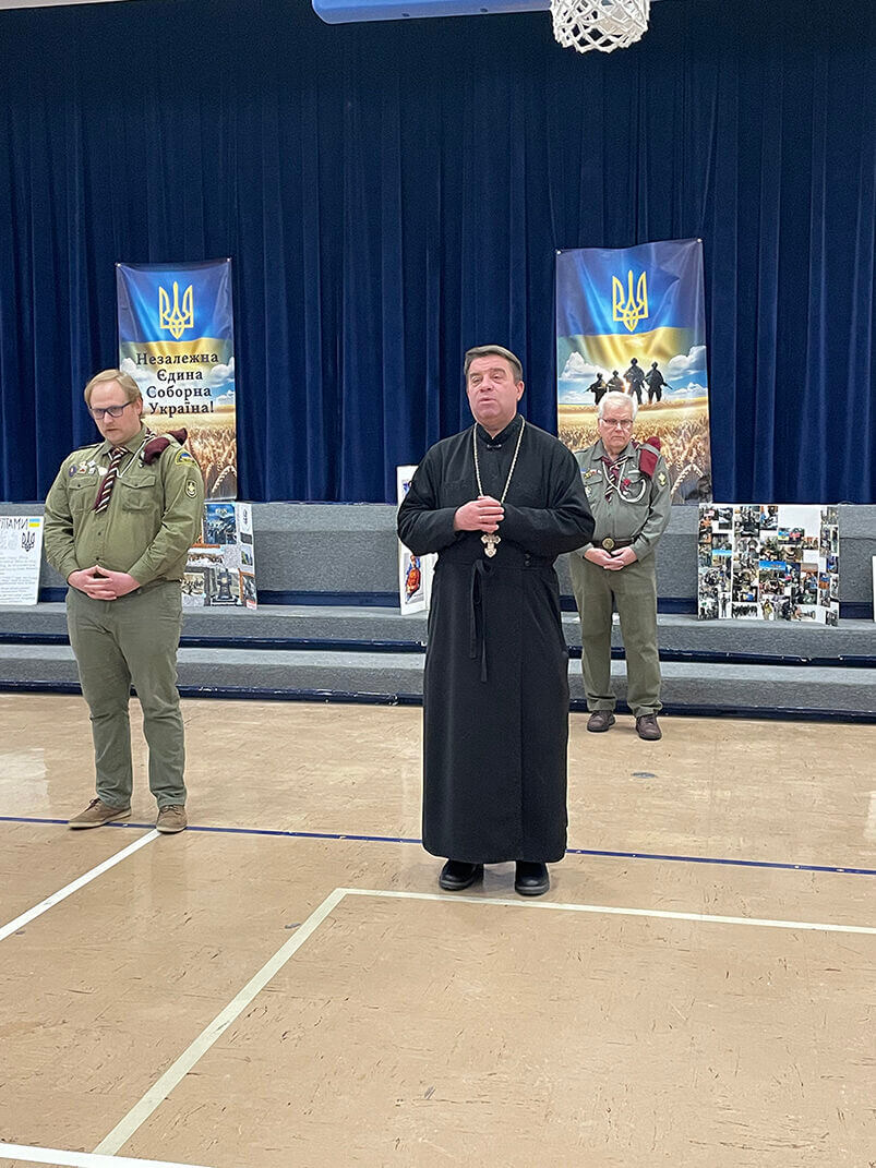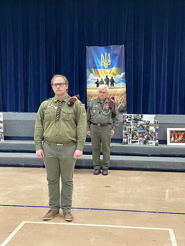 У межах урочистої програми представники ПЛАСТу підготували змістовну презентацію про повномасштабну війну та героїчні дії українських військових і цивільного населення. Станичний Пласту в місті Чикаго Андрій Коломиєць запросив до слова пластового виховника Володимира Шургота – ветерана Збройних Сил України та учасника визволення Херсона у 2022 році. Він поділився власним досвідом служби та відповів на запитання молоді.