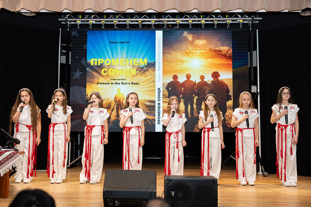 І всі вони були згадані на презентації – у розповідях присутніх, у молитві, яка з особливим трепетом і з особливою духовною силою звучала під покровом храму святого Йосифа Обручника. Того храму, який був для Михайла духовною домівкою: тут вони з Оксаною вінчалися, тут хрестили свою донечку і звідси його провели в останню дорогу, адже загиблого воїна перевезли з України для поховання у Чикаго. Саме церква стала великою підтримкою для родини Михайла тоді, у час прощання з дорогою людиною, і є підтримкою тепер, коли родина іде через життя з вічним болем. Тому на презентації Книги Пам’яті молитва і промова отця Миколи Бурядника, благословення Владики Венедикта через відеозвернення, присутність отця Андрія, отця Володимира, отця Ярослава та отця Богдана змусили усіх присутніх задуматись, хто ми у цьому житті, які цінності є для нас найважливішими. Вони наповнили наші серця вірою, яка тримає тоді, коли здається, що вже немає сили; наповнили словами, які стали дотиком до живої пам’яті про сина, про чоловіка, про татуся, про брата, про друга. Тому усі промовці говорили про Михайла зі сльозами і з гордістю, бо знають, що прожив він своє життя чесно і зробив свій вибір свідомо. Бо вкотре стверджували: він був особливим для всіх. І ділились історіями, які викликали сміх крізь сльози, згадували жарти Михайла, його доброту, його захоплення родинними історіями, його любов до цукерок (ох уже і ласун був, міг кілограмами їх поїдати!), говорили про внутрішню свободу і про його велике серце, у якому вистачало місця на любов до рідних людей і на любов до України – оту щиру і віддану, яка не згасла навіть за океаном. Про це вона і творилася, книга «Променем сонця». І народилася. Як міст між континентами, між минулим і майбутнім, між воістину великим Героєм і маленькою Соломійкою, яка, перечитуючи кожен рядок, завжди буде пишатися своїм татом.