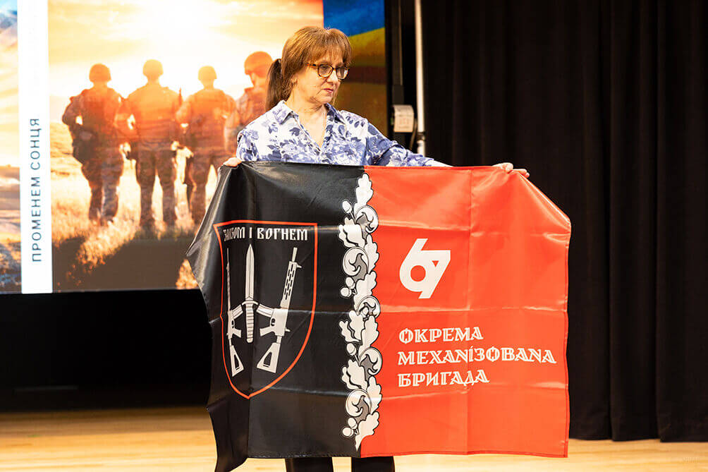 P.S. Особливий момент: на завершення презентації книги її автор Руслана Романюк отримала надзвичайний подарунок – прапор, пам’ятну табличку та шеврон від 67-ої окремої механізованої бригади, тієї, в якій служив загиблий Герой.