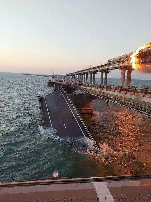 І тут як тут — так званий теракт на Кримському мосту. Надто непростий в організаційному плані. Сам вибух, джерелом якого начебто є вантажівка, передбачає величезну кількість вибухівки. Чоловік, який проїжджав цим маршрутом за кілька годин перед подією, розповів: