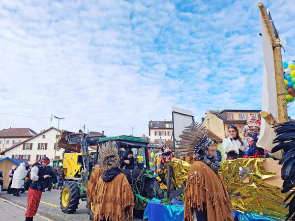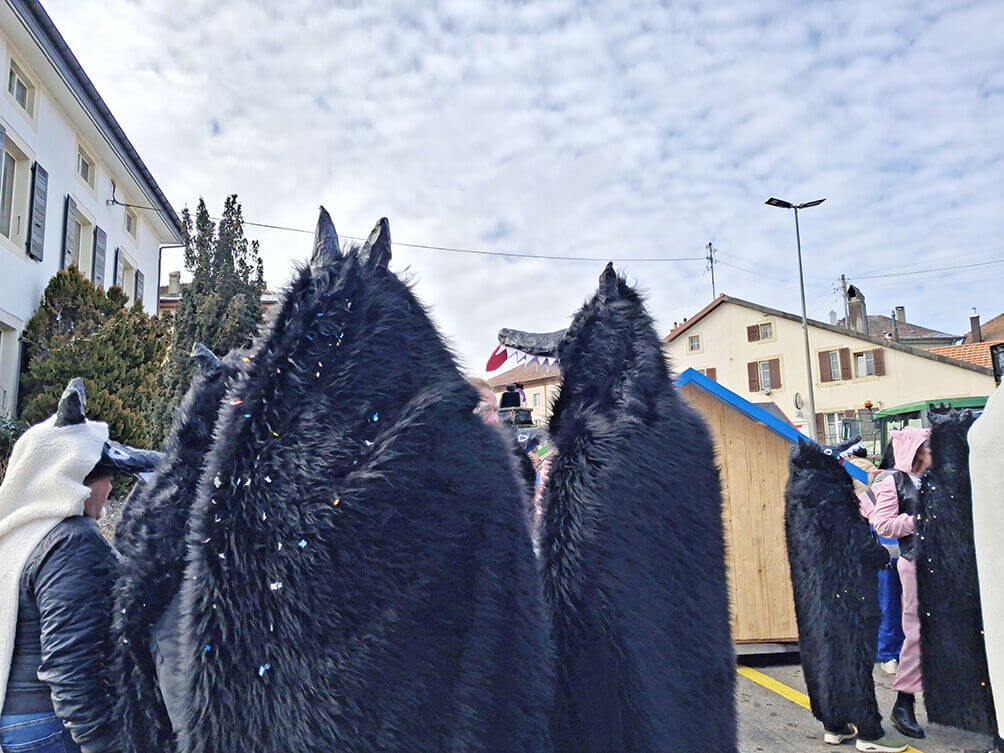 Хто рушає? Хто йде та їде? Тут і швейцарські національні типи, місцеві танці та костюми – наприклад, учасники перебрані на вовків, ведмедів та інших тварин. Є в гігантських костюмах півників, курей, курчат… Це й натяк на господарство, і на звичаї – адже в горах кожна комуна називається по-різному. У кожної – свій герб і тотем, це ж саме стосується сіл. Тут є й «Вовки», і «Бики», і «Бджоли», і ще багато хто мешкає на масиві Жура та в Альпах. А ще бачимо персонажів, чиї костюми і маски нагадують кельтські та германські. Так, у цих місцях пам’ятають своє коріння та витримують одяг у стилі.