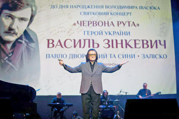 – Герой України, Маестро Володимир Івасюк, – так означив свого побратима Василь Зінкевич. – Його пісні – то є наша ідеологічна зброя. Його «Червона рута» – наш спалах національної свідомості. Так було. Так є. Так буде. Людина мала магічну силу волі. Він завжди був непокірним. Хай так буде завжди. Його пісня про любов єднає нашу Україну від донецьких степів до зелених Карпат. Слава Володимиру Івасюку!