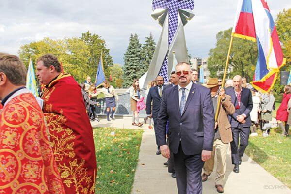 У неділю, 16 жовтня, на посілості Громади Святого Андрія Помісної Української Православної Церкви в м. Блумінгдейл, перед пам’ятником Небесної Сотні і всіх Героїв України прот. Віктор Полярний в сослужінні ієрея Романа Артимовича ГрекоКатолицької Церкви Володимира і Ольги м. Чикаго і ієрея Михайла Лещишина відслужив Заупокійну Панахиду. У Панахиді взяли участь консули та консульські представники: Литви (Vidmantas Verbickas), Канади (Alan Gogbashian), Польщі (Pavel Zezak), Канади (Syed Sameer & Ahmed Family), Німеччини (Christopher Fucks), Словакії (Rosemary Macko Wisnosky), Чехії (Monika Bokšová), і генеральний консул України в Чикаго Сергій Коледов (Sergiy Koledov). Також взали участь УкраїнськоАмериканські Ветерани-пост 32 (командир Василь Мірутенко) і місцеві українські організації (Товариство УПА, УККА відділ Іллінойс, «Помаранчева Хвиля,» Спілка Української Молоді ім. Дмитра Вітовського, Спілка Української Молоді ім. Миколи Павлушкова, Організація Оборони Чотирьох Свобід України відділи 31-ий і 8-ий), Організація Об’єднання Жінок Оборони Чотирьох Свобід України (Округа, відділ ім. Оксани Пчілки-Палатайн і відділ Алли Горської-Чикаго, ОДУМ Чикаго).Група військово-історичної реконструкції «Сотня Сіроманців» взали участь і представили «козаків» в традиційному історичному одягу.