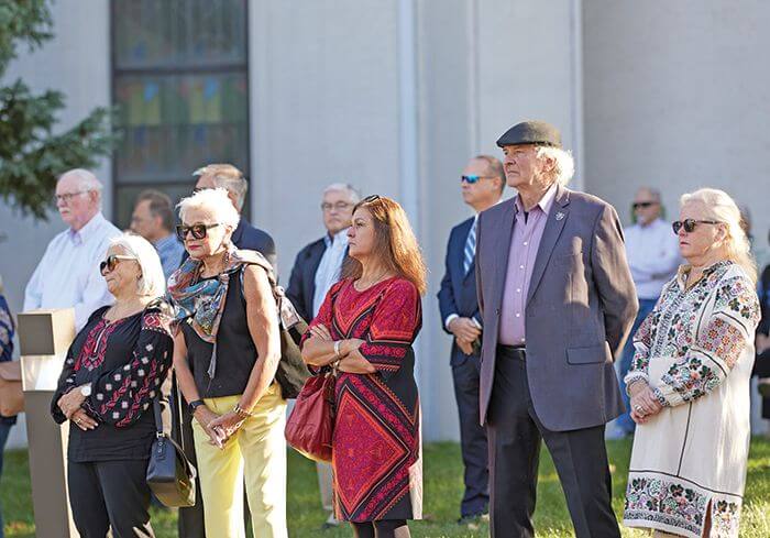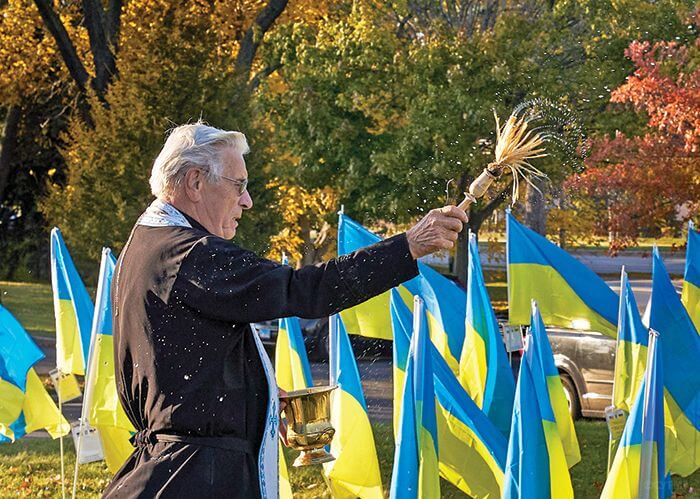 Сьогодні багато хто з вас були свідками надзвичайного Поля Слави на вулиці. Вітаємо Український Православний Собор Святого Андрія Первозванного, парафію, парафіяльну раду та голову парафіі Івана Яреська. Це лише один приклад того, що можливо. За допомогою цього Поля Слави ми говоримо світові, що ми сильні, що вторгнення росії є неправильним, що ми збираємо кошти на найбільші потреби в Україні. І ми надсилаємо ці прапори з окремими повідомленнями та побажаннями в Україну — щоб кожен захисник і кожна захисниця знали, що ми завжди з ними.