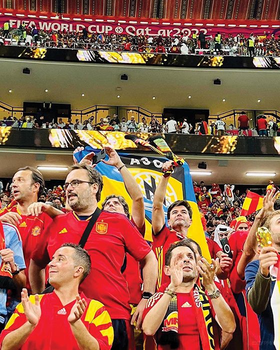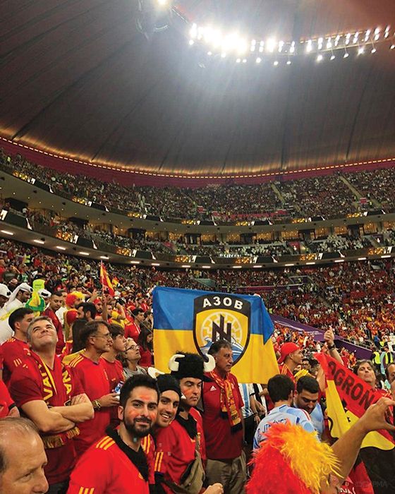 Хоч наша Національна збірна і не увійшла до списку країн-учасниць ЧС-2022, війна, яку почала рф на території української держави, не може не нагадувати про себе попри усі бар’єри від керівництва ФІФА, а також уряду Катару. Наприклад, під час матчу між Іспанією та Німеччиною, вболівальники іспанської команди принесли на стадіон прапор українського полку «Азов». Проте за кілька хвилин після того, як фанати розвісили прапор, до них підійшли представники ФІФА і відібрали прапор. Про це розказав колишній футболіст збірної України Роман Зозуля. «Весь світ захоплено спостерігав за титанічним протистоянням наших захисників Маріуполя. Весь світ бачить, хто є країною-терористом і чиї військові — це окупанти, злочинці, терористи, садисти і зеки. Але у зазомбованому FIFA нічого не бачать і не чують», — написав він.