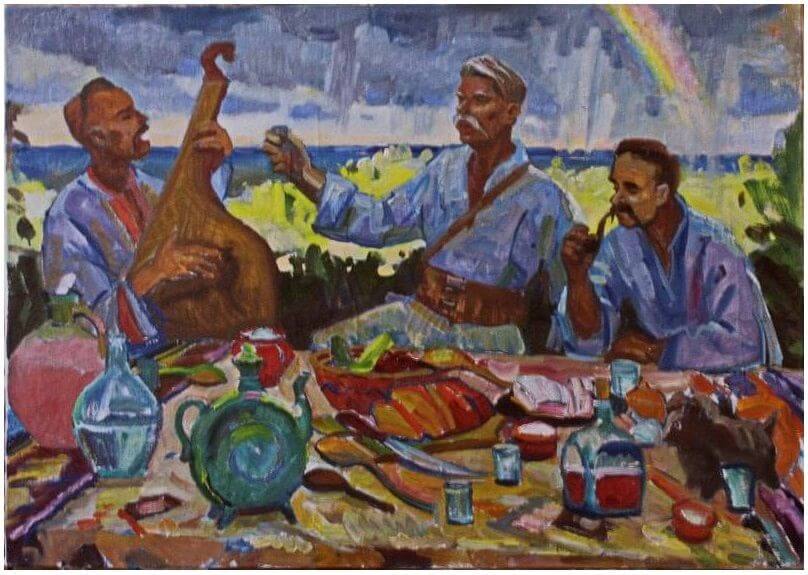Особливо хочу вирізнити твори, в яких потужні колоративи. Цікаво, що дібрані тони тут можуть бути й несвідомо. Наприклад, поєднання синього і жовтого викликає асоціації з нашим прапором. Узагалі ці картини гарні ще й підтекстами. У витвори хочеться вдивлятися. Зокрема, вражає полотно «Щириця» (яке по-справжньому яскраве тільки якщо бачити оригінал, а не електронну копію). Щириця, як відомо, – це рослина амарант. На цій картині колір щириці можна назвати… пурпуровим? Із відтінком бордового? Чи це суміш? Оригінальний відтінок? І сама рослина – символ безсмертя, стійкості, віри (за легендою, амарант квітнув ще в Едемі). Не кажучи про давність амаранту. Цікаво осмислювати, як змальована тут щириця – і як реальна, і як легендарна, мистецький символ. Зокрема, у мене виникло багато асоціацій під час спостережень цієї картини. Було цікаво слухати пояснення автора та взяти участь в обговоренні. І ще оригінально, що зображена нібито звичайна природа в селі – але піднесена до рівня скарбниці. Треба вміти бачити. Тут є це вміння.