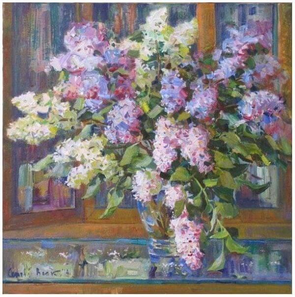 Несподіваною виявляється картина, присвячена квітам – це бузок. Упадає у вічі акцентування на синьому та білому кольорах. Холодні барви? Але не зовсім, бо саме цей твір примушує відступити, ще раз подивитися картину й естетично її оцінити.