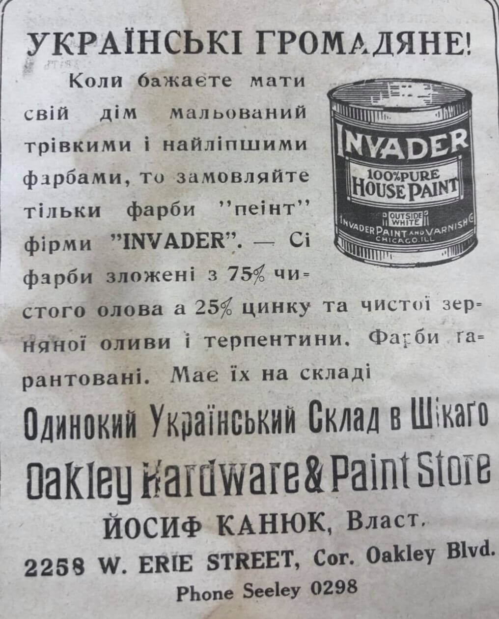 Уявити українське село у Чикаго без крамниці з фарбою в 1912 – аж ніяк! Іван Шмигельський на Вестерн і Супіріор продавав фарбу та кухонне устаткування. Подібну крамницю відкрив в 1919 році на вул Ірі та Оклей Й. Канюк, закрився 1934-го. Також на Чикаго ав. народжені в США молоді бізнесмени Коваль і Вайт склали конкуренцію старому емігрантові Рурці, який у 1922 році змушений був оголосити банкрутство. «Купуйте у тих, котрі у вас купують!» – П. Кворка і син розгорнули широку рекламну кампанію з роздрібної торгівлі, і в 1922-му обидва їздили по місту власними автами.
